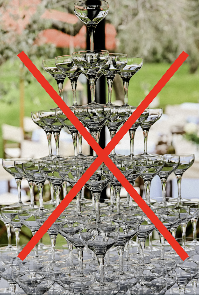 - Champagnerpyramiden: Verbraucht nur unnötig Champagner und die Gläser kleben.